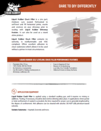 Liquid Rubber Asphalt Crack Filler is perfect for sealing cracks in asphalt driveways to prevent further damage. It’s made of 100% solid material, so it won’t shrink or pull away after drying. The self-leveling formula flows smoothly into every part of the crack for a perfect seal. It even works in damp conditions and can be applied in cold temperatures down to 32°F (0°C), making it more versatile than other products.  When you want a product to work, this is the one for you.