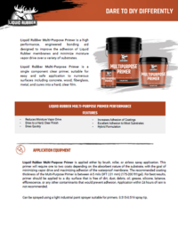 Liquid Rubber Multipurpose Primer works to increase bonding and provide a vapor barrier to help prevent blistering with other Liquid Rubber products. It increases adhesion on a variety of substrates and for a range of popular projects.